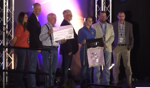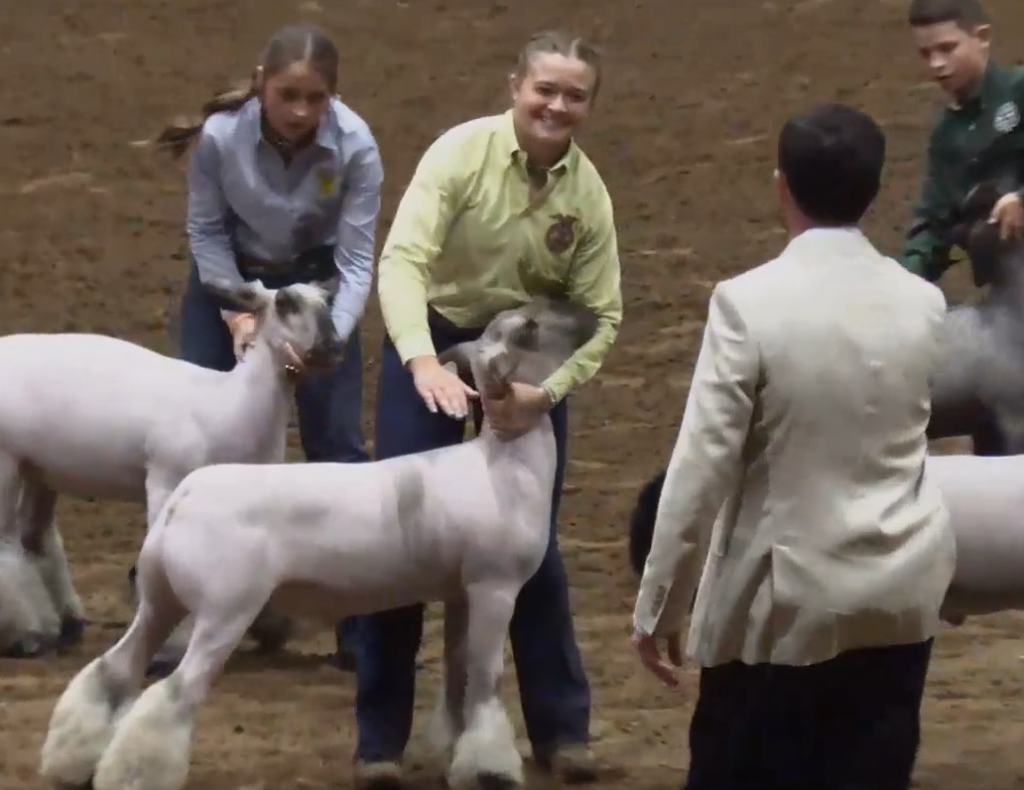 Next up was the Market Meat Goat Grand Drive, where Maudie Peach, out of Division 3 took the Grand Champion Title with her from the Mooreland FFA Chapter, Peach got a $7,500 check.
