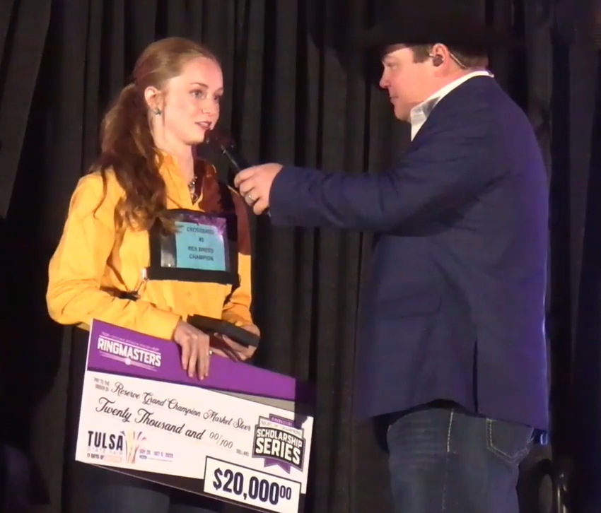 Reserve Grand Champion went to Sapulpa FFA’s Finley Yocham with her Cross, as well as winning a $20,000 Check for her hard work.