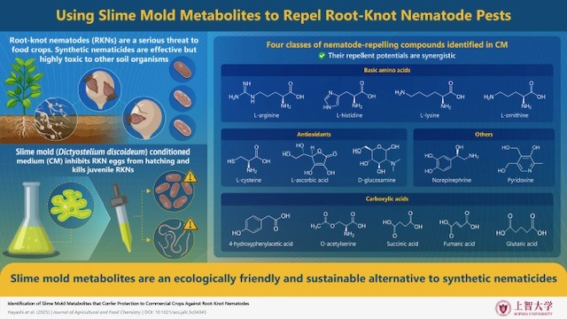 A team of researchers led by Professor Tamao Saito from the Faculty of Science and Technology at Sophia University, Japan, has discovered 14 compounds secreted by slime molds that repel RKNs and could be the source of new, non-toxic anti-RKN pesticides. Their research was first made available online on July 29, 2025, and published in Volume 73, Issue 31 of the Journal of Agricultural and Food Chemistry on August 6, 2025.