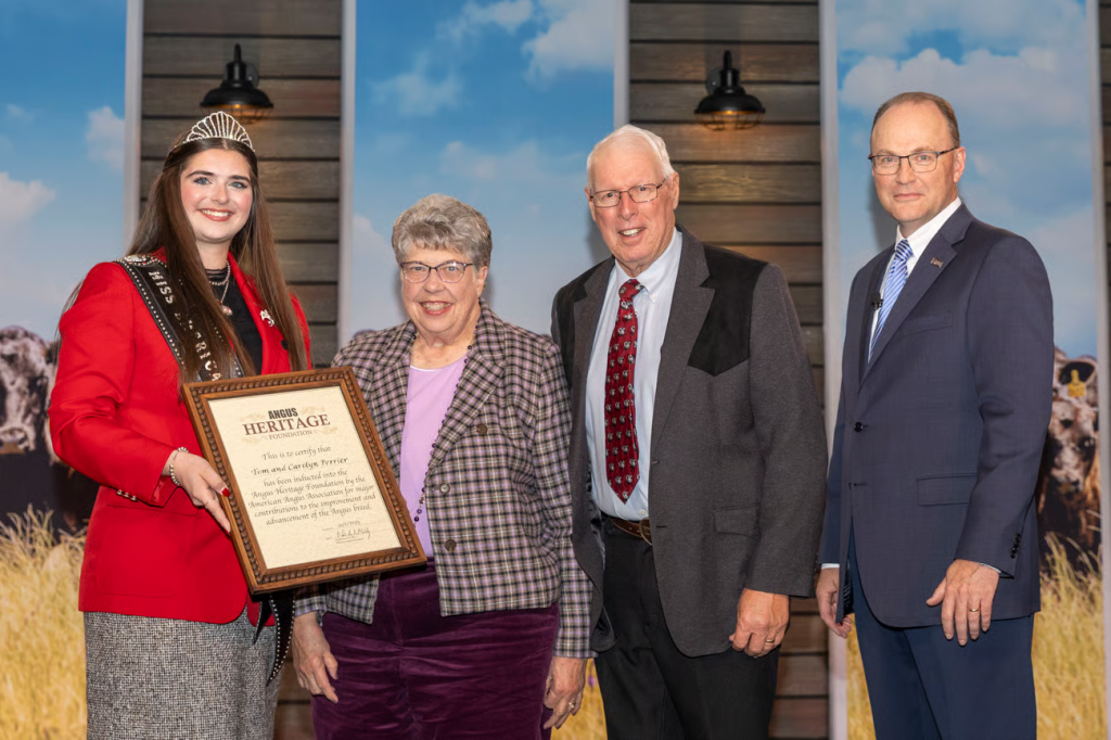 Each year, the Association inducts new members to the foundation, honoring their impact during the Angus Convention Awards Dinner. This year, Angus breeders, their families and industry partners gathered in Kansas City, Missouri, on Nov. 1, to celebrate the 2025 inductees: Dr. David Hawkins, Mason, Michigan; Mike McGuire, Waverly, Alabama; Tom and Carolyn Perrier, Eureka, Kansas; and Dr. Robert Totusek (posthumously), Oklahoma City, Oklahoma.