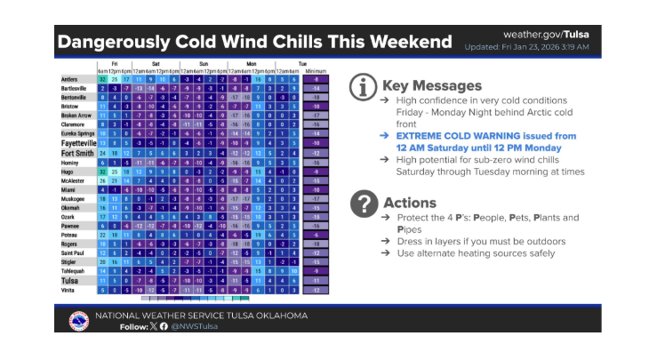 Extreme Cold Warning: In effect; limit outdoor exposure.