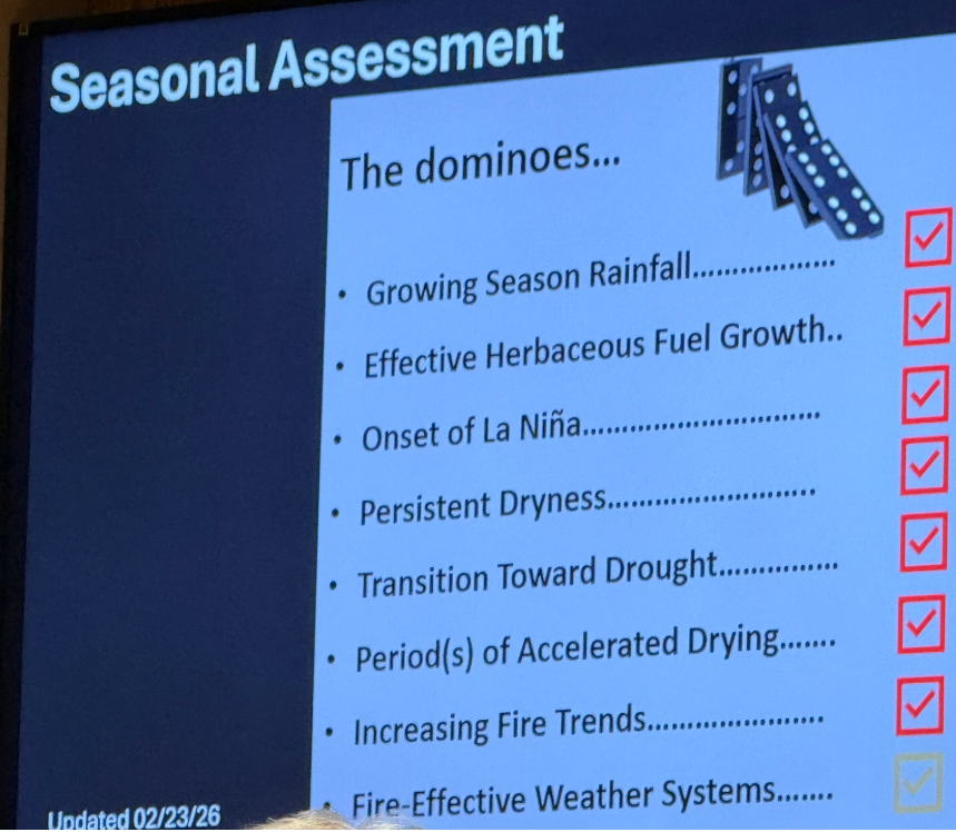 “We often times talk about those [fuels] getting to a point of no return where they override the weather, they override the fire environment, and that’s exactly where we’re at,” James noted.