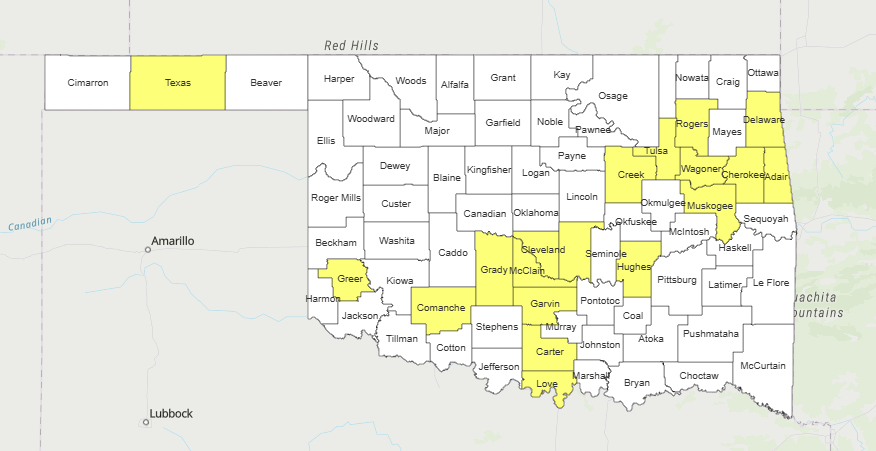Oklahoma Forestry Services (OFS) has pre-positioned suppression groups and task forces in Guymon, Woodward, Weatherford, Lawton, and Okmulgee. Additionally, National Guard modules have been deployed to Tahlequah and Talihina to assist with the ongoing resource commitment.