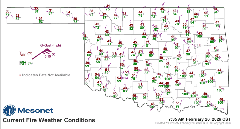 Dormant fuels and persistent dry conditions continue to drive significant wildfire activity across Oklahoma, with state forestry resources currently engaged in multiple large-scale suppressions. As of late February 2026, the combination of above-normal temperatures and low relative humidity has created an environment where even moderate winds trigger problematic fire behavior, including tree torching and spotting.