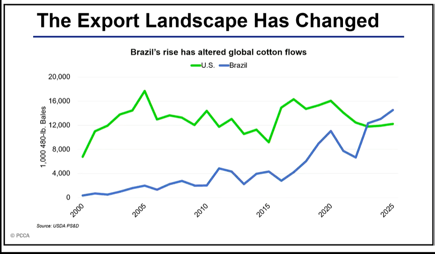 The U.S. is facing intensified competition from other major cotton exporters, most notably Brazil and Australia: