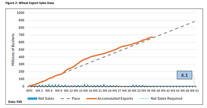 - Export Pace: Total wheat commitments sit at 845 million bushels, with net sales averaging 8.2 million bushels over the last two weeks—a decline from the 15.7 million bushel average seen in the month prior.