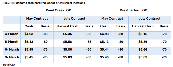 - Oklahoma Cash Prices: In locations like Pond Creek and Weatherford, basis strengthened slightly on Friday, but not enough to definitively support the massive three-day rally.