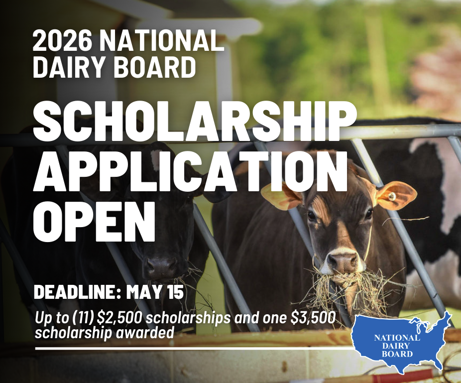 Undergraduate students in their sophomore through senior year for the 2025-2026 academic school year and enrolled in college/university programs that emphasize dairy are eligible. Relevant majors may include communications/public relations, journalism, marketing, business, economics, nutrition, food science and agriculture education.