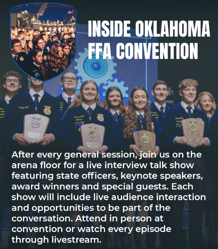 - 100th State FFA Convention: The premier event will take place May 5th and 6th at the BOK and Arvest Convention Center in Tulsa. “We are planning for a big event. It’s going to be really fun,” Fye said.