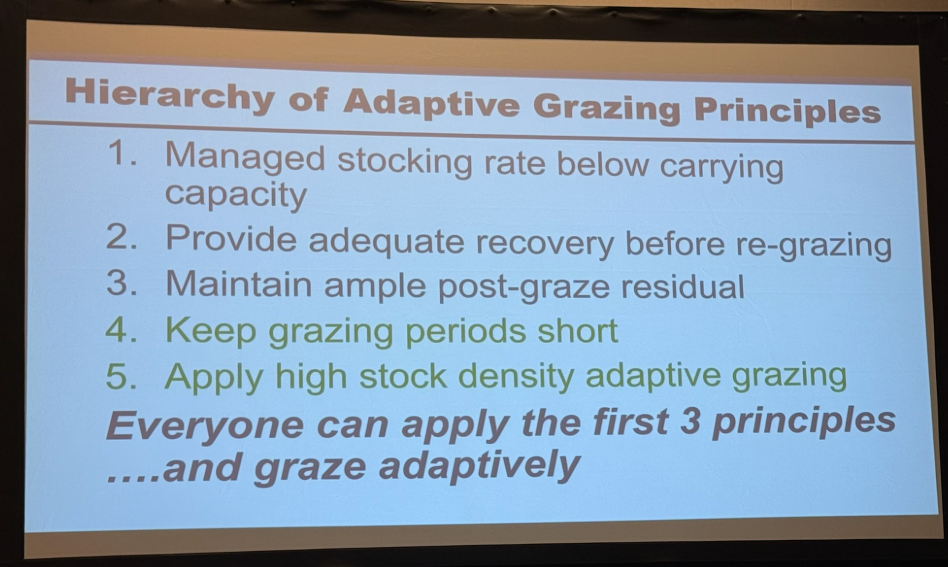 Aljoe defines adaptive grazing as a dynamic management strategy that adjusts grazing periods, durations, and forage utilization based on specific goals and environmental contexts. Unlike static systems, adaptive grazing allows producers to respond to real-time conditions to improve soil health and ecosystem processes.