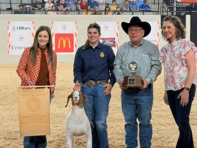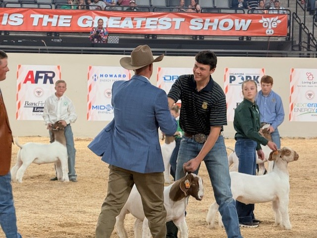 Grand Champion Market Goat was awarded to Jase Sparks, Division 5 from Hartshorne FFA
