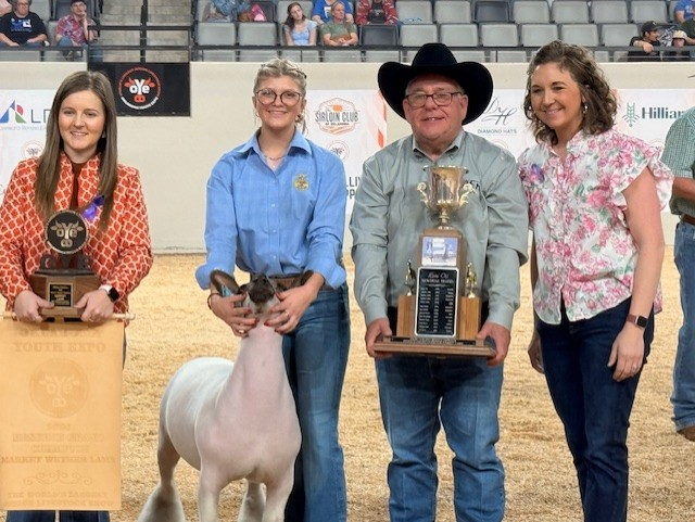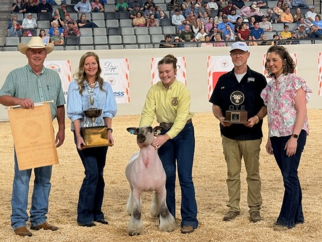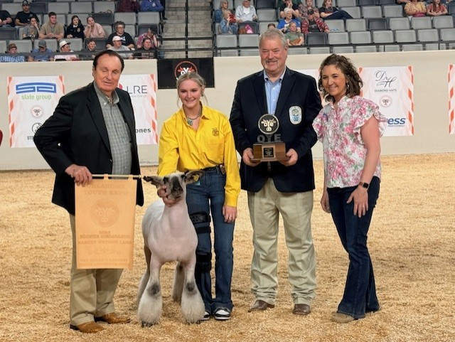 Grand Champion Market Lamb was awarded to Sayde Allen showing her Blackfaced lamb from Canute FFA