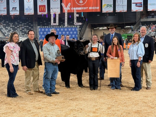 Next, Reserve Grand Market Steer went to Delanie Troyer showing her Crossbred from Mayes County 4-H