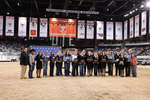 Participation in the AFR Agricultural Achievement Contest is limited to Oklahoma junior and senior high school students who exhibit an animal at OYE. Contestants participate in showmanship rounds with their OYE animal and take a written test about the livestock industry. The top 20 finalists are individually assessed on their showmanship skills in a specific class. The combined scores from the