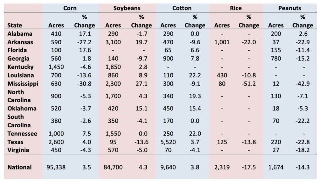 Maples, William E. “Southern Acreage Shifts Toward Soybeans and Cotton in 2026 Planting Intentions.” Southern Ag Today