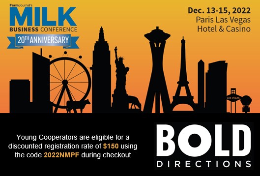Bold Directions are the result of strong leadership and intentional action, and in these unprecedented times, it is critical to think differently about the future of your dairy. Join NMPF’s National Young Cooperators Program Dec. 13-15 at the 2022 MILK Business Conference in Las Vegas as we explore the decisions and opportunities that can set your dairy on the path of BOLD DIRECTIONS.
