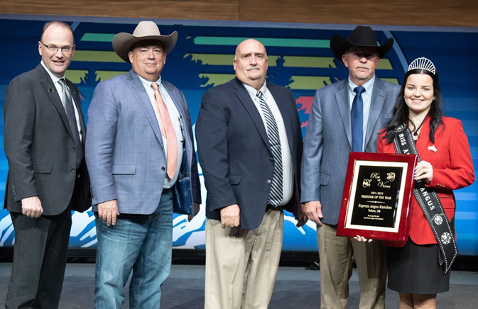 | Angus cattle have a tradition of excellence in the show ring and that history continues across the country each year. The American Angus Association® created the Roll of Victory (ROV) Show Program to recognize show-winning animals, their sires, dams, breeders and owners. The ROV Show Heifer of the Year, the ROV Bull of the Year and the ROV Breeder of the Year were honored at the 2022 American Angus Association Awards Dinner and Reception on November 6 in Salt Lake City, Utah. “The 2021-2022 ROV show program included 20 shows across the country. We love seeing how the competition improves every year” said Caitlyn Brandt, director of events and junior activities. “We congratulate the winners on their achievements.” The ROV season runs from June 1 through May 31. There are seven Super ROV shows and 13 other recognized shows for a total of 20 shows per year. Points for these shows are accumulated on an annual basis. The ROV Show Heifer of the Year was SSF Lady 5030 owned by Houston Ferree of Sullivan, Indiana. The heifer received grand champion honors at the American Angus Breeders Futurity and the World Beef Expo and reserve honors at the North American International Livestock Exposition and Fort Worth Stock Show. The ROV Show Bull of the Year was Conley DS Clear Cut 0510 owned by Conley Cattle, Sulphur, OK; Ferree Fitzgerald, Sullivan, IN; David Smith, Boulder, CO. This bull was grand champion bull at the National Western Stock Show, Western National Angus Futurity, Atlantic National and the Tennessee State Fair. The ROV Breeder of the Year was Express Ranches of Yukon, Oklahoma. Express Ranches earned 832 points from the 20 eligible shows throughout the year. This is the 11th consecutive year Express Ranches has won the award. For news about Angus Convention, visit www.angus.org/Pub/NewsRoomReleaseList. |