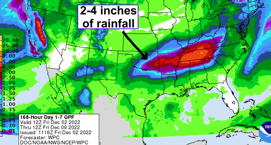 State Climatologist Gary McManus says December is presenting a strange weather pattern with lots of chances for rain “Over the next week or so with lots of moisture wrapping around high pressure in South Texas and swinging up this way from the SW.”
