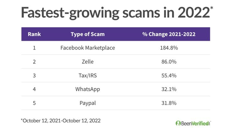 Users of Facebook Marketplace and P-2-P cash transfer apps Zelle and PayPal were among the fastest-growing targets of scams the past year, along with crypto and romance scammers that use WhatsApp, the popular phone and text messaging app.