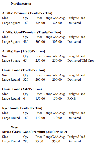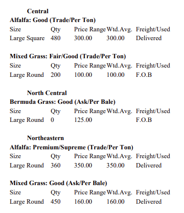 Hay trade picked up these past weeks due to most of the state receiving sleet and freezing weather. We