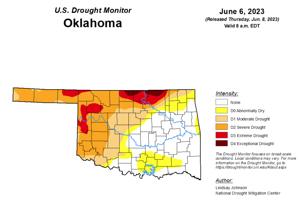 According to the latest Oklahoma Drought Map, Exceptional drought has improved again this week, now at 1.45 percent. (Last week was at 2.7 percent.)