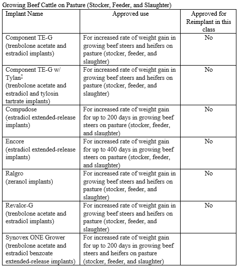 - There are no implants available with reimplant claims on the label for used during the stocker or grower phase of production.