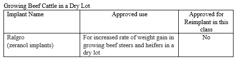 - Ralgro is approved for the preweaning “Beef Calves”; “Growing Beef Cattle on Pasture” and “Growing Beef Cattle Fed in Confinement for Slaughter” stages as well, but has no reimplant label claims.
