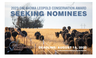The Oklahoma Leopold Conservation Award application deadline is August 15, 2023. Applications must be emailed to award@sandcountyfoundation.org.