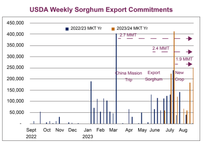 World sorghum production is expected to increase in the new marketing year, mainly due to expected U.S. production increase. The U.S. will represent roughly 15 percent of the world’s production total and more than 60 percent of the world’s sorghum exports.
