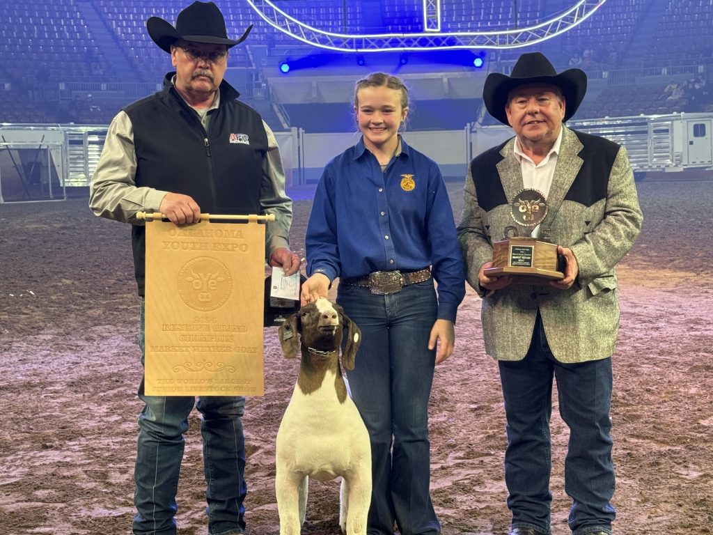 The market goats were all shown on Wednesday at the OYE, and the division winners lined up on Thursday night at the 2024 Oklahoma Youth Expo as a champion, reserve champion and bronze champion was selected.