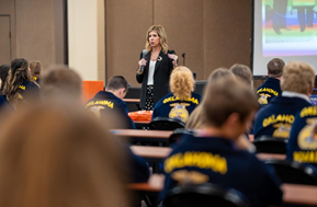 Oklahoma Pork also led one of the six Career Success Workshops, which was attended by over 100 students. Oklahoma Pork’s Executive Director Kylee Deniz had an engaging session discussing the various pathways available within the pork industry. We also distributed “merch” including sunglasses, fanny packs, Eat Pork license plates, socks and backpacks. Plus, we are thrilled to congratulate show pig producer and Oklahoma Pork high school senior mentee Cooper Kline on securing a notable role on the 2024-2025 Oklahoma FFA State Officer Team. We are excited to see him excel in this leadership role!