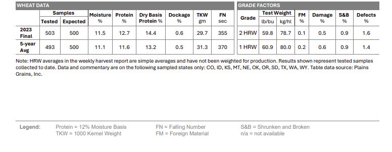 • Crop Conditions: HRW crop conditions are holding steady with 57% of the crop in good to excellent condition. By