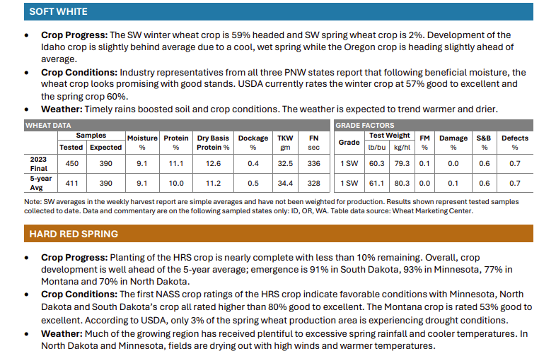 southern border. An estimated 60% of the HRW crop is headed; development of the northern and PNW growing
