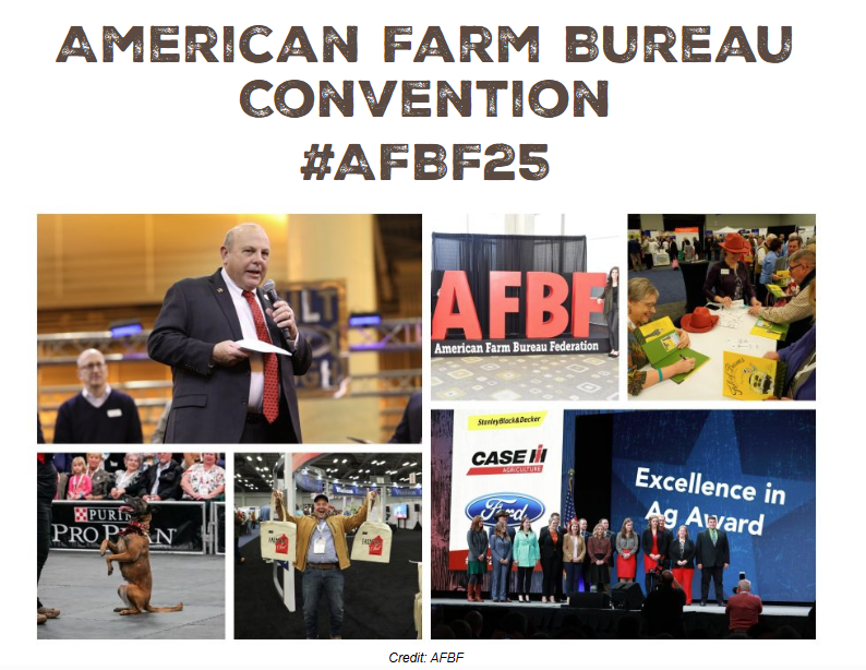 View the high-level convention agenda here. Convention registration opens Oct. 1. Members may register for the convention and tours through their state Farm Bureau office. Registration is also available through AFBF. The official event hashtag is #AFBF25 and the event website is https://annualconvention.fb.org/.