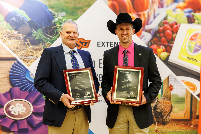Brian Freking and Brian Pugh received the Oklahoma State University Extension Distinguished Educator Award during the OSU Extension County Extension Director conference on Jan. 14 in Stillwater.