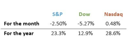 The S&P 500 finished its second straight year with gains of more than 20%, something it hasn’t done since 1998 per the Associated Press. For the month of December, returns were mixed.