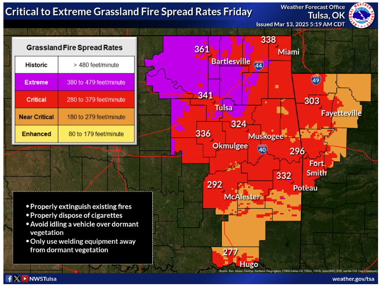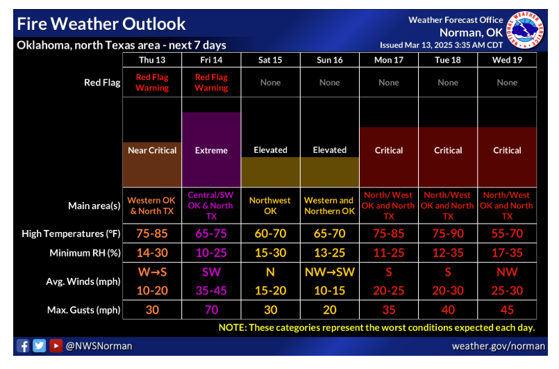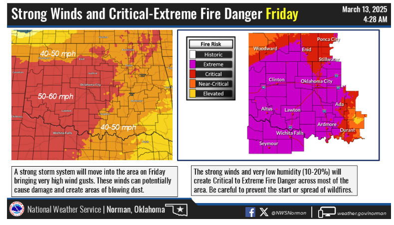 The combination of high winds, dry conditions, and potential for rapid fire spread makes this a particularly dangerous period for Oklahoma.