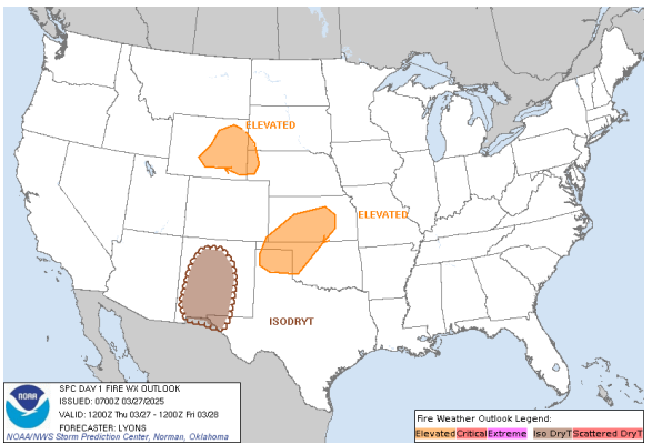 Outlook: Large and significant fire occurrence concern has subsided for a few days affording fire crews good opportunity control recent wildfires. Elevated concern remains in place now and through the near-term forecast focused on northwestern Oklahoma and surrounding areas where there is little (or nil) optimism for wetting rains in the current 7-Day Quantitative Precipitation Forecast. This is compounded by the notable area spanning across the northwestern counties from I-35 west through the Oklahoma Panhandle where persistent lack of precipitation and drying conditions have thrust composite fuel moisture into critical concern. During the seasonal transition, much more dynamic weather systems are expected to have both a storm side and a fire-effective side often predicated by dryline intrusion and subsequent cold front passage. While no critical fire weather is evident in the near-term forecast, we need to remain mindful of two things: 1) Given current fuel moisture profiles, less intense fire weather is required to support problematic and extreme fire behavior. And, 2) Vigilance in discerning dynamic forecast components is required to fully assess wildland fire occurrence and severity in the predicted environment.