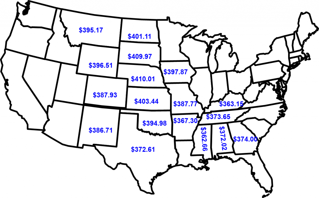 Feeder cattle prices around the country reflect local supply and demand conditions and the economic process of moving cattle to the middle of the country where feedlot production is concentrated. Figure 1 shows the average price of 500-pound, M/L, No. 1 steers in selected states for the first three weeks of April. The map illustrates the typically pattern of prices across the U.S. The prices range from a high of $410.01/cwt. in Nebraska to a low of $362.66/cwt. in Mississippi, a spread of 11.5 percent from high to low. It is generally true that the highest feeder cattle prices will be in Nebraska with prices declining in all directions away from Nebraska.