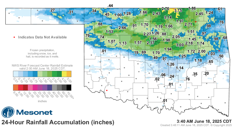 As for the actual rainfall totals via the Mesonet-