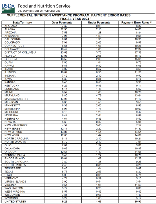 FY 2024 SNAP Payment Error Rates By State: