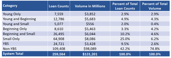 · Young Producers: 50,143 loans totaling $13.5 billion were made to young producers who are 35 years old or younger.