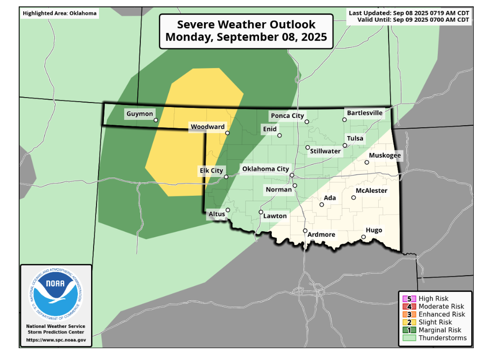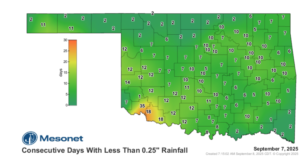 The return of warmer weather also means an end to the recent rainfall. According to State Climatologist Gary McManus, there isn’t much rain expected to show up in the next week. However, northwest Oklahoma could see some severe storms later today.