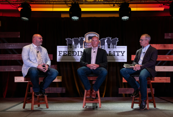 Certified Angus Beef’s (CAB) Paul Dykstra was joined by Dallas Knobloch, 4K Cattle LLC, and Travis Thomas, Upper Iowa Beef, for a panel discussion at the 2025 Feeding Quality Forum in Rochester, Minn. in August.