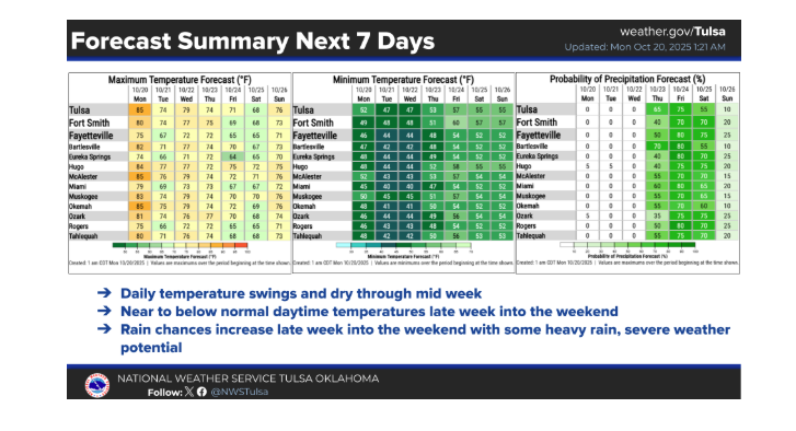 Oklahoma is set to trade its recent stretch of summer-like warmth for some much-needed rainfall and cooler, more seasonable temperatures as a significant storm system approaches the state midweek.