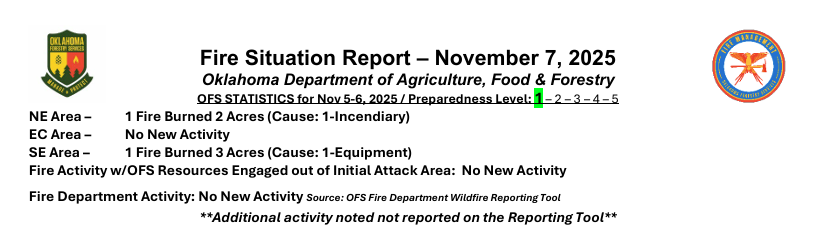 Areas of fog in some locations will stall the development of burning conditions today as a weak cold front passes through Oklahoma. Northerly winds will be strongest midday, diminishing some into the afternoon and relaxing overnight. Initial attack activity is expected to prove successful.