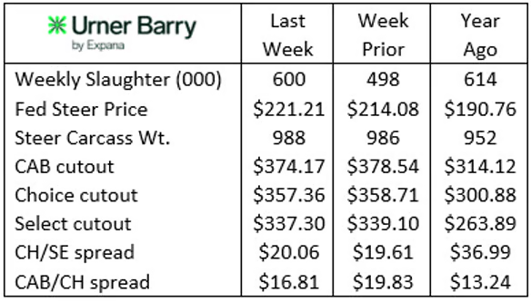 Cutout price spreads are mixed with the CAB premium above Choice at a very reasonable $16.81/cwt., down $3/cwt. last week. The Choice/Select spread remains relatively wide at $20.06/cwt. in Urner Barry’s data last week. This level is much lower than a year ago, as the Select grade share of fed cattle has slipped to just 10.9% of the carcass supply. Customers for Select grade product are finding their orders shorted while distributors have told them to get on board with “at least” USDA Choice moving forward.