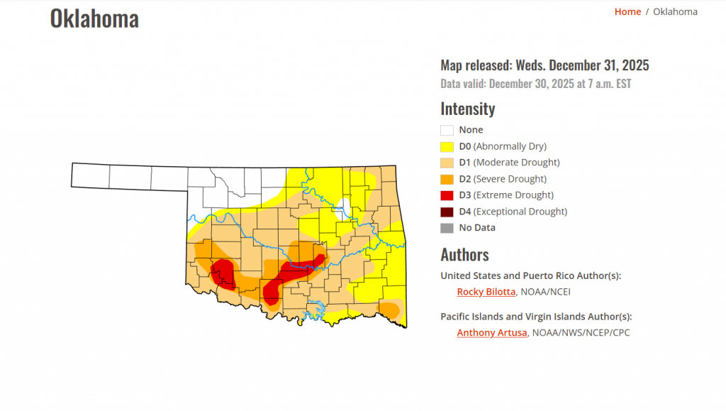 According to the latest Oklahoma Drought Monitor report, exceptional drought remains at 0 percent, unchanged from the start of the calendar year.