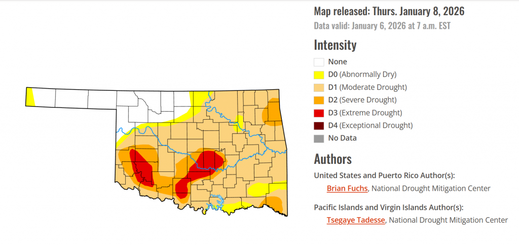According to the latest Oklahoma Drought Monitor report, exceptional drought remains at 0 percent, unchanged from the start of the calendar year.