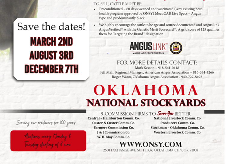 Oklahoma National Stockyards Special Angus Sale – Oklahoma City, OK – 12/7/26